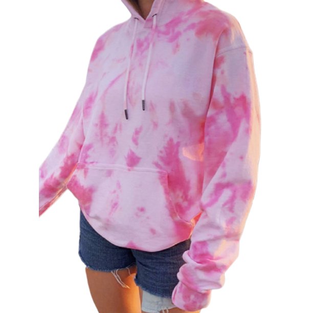 Woman Tie Dye Hoodie Long Sleeve Front Pocket Drawstring Pullover Loose Sweatshirt Walmart Canada